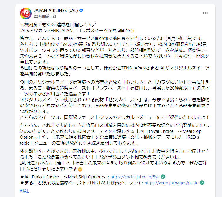 JALの機内食に、「環境にやさしい」という「植物性チーズ」やら「大豆ミート」を使うのでSDGsにも適うという話です。